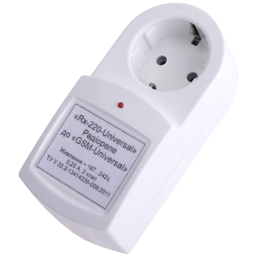 Примітка: Виробник: Україна | Опис: Радіорозетка Rx-220-Universal призначена для дистанційного керування електроприладами до 100 метрів. Радіорозетки застосовують для керування поливом, освітленням, обігрівачами, кондиціонером та іншими електричними приладами. Управління радіорозеткою здійснюється брелоком, купується окремо. У розетку можна запрограмувати до 20 брелок. Живиться від мережі 220В. Працює з ППК "GSM-Universal" через "TX-Universal" або брелоком Тх-100