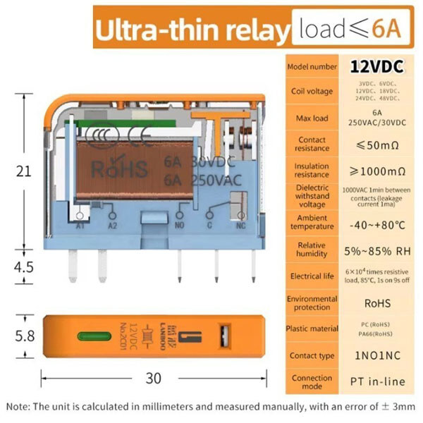 Примітка: Бренд:: LB | Тип реле:: Моностабільне | Монтаж:: PCB | Номінальна напруга котушки , Вольт:: 12 | Конфігурація контактів:: 1С (SPDT) | Комутована напруга AC , Вольт:: 250 | Комутована напруга DC , Вольт:: 30 | Струм що комутується AC , А:: 6 | Струм що комутується DC , А:: 6 | Габаритні розміри, мм:: 21x5.8x30 | Мін. робоча температура, С:: -40 | Макс. робоча температура, С:: 80