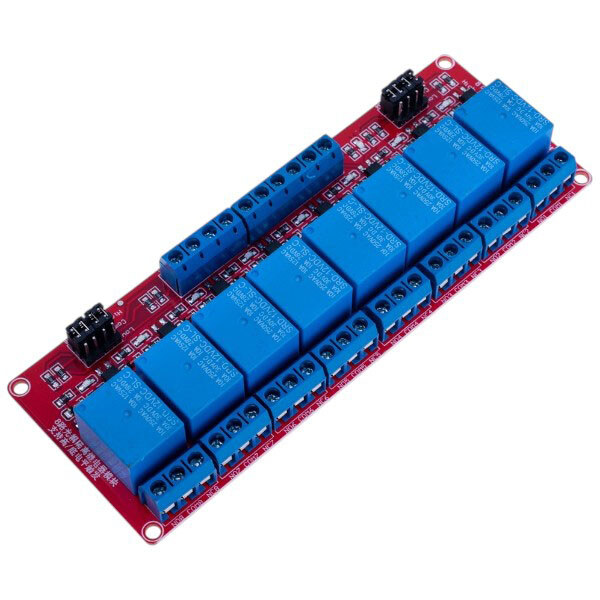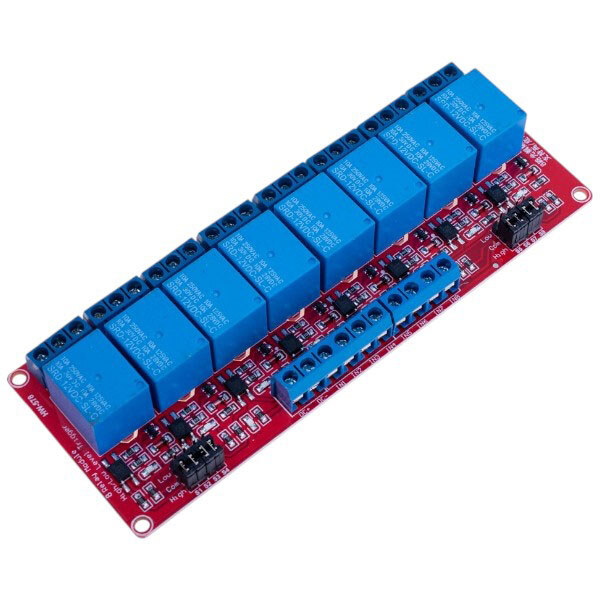 Примітка: Опис: Модуль 8 реле з оптичною розв'язкою. Увімкнення модуля здійснюється або 1 (високим рівнем напруги), або 0 (низьким рівнем напруги). Режим роботи налаштовується встановленням перемичок на платі. Робоча напруга 12В, комутована напруга: 250V/10A. Вихід реле SPDT: NC,NO,COM. Габарити: 142x50 мм | Категорія: Модуль комутуючі | Призначення: Реле 12VDC