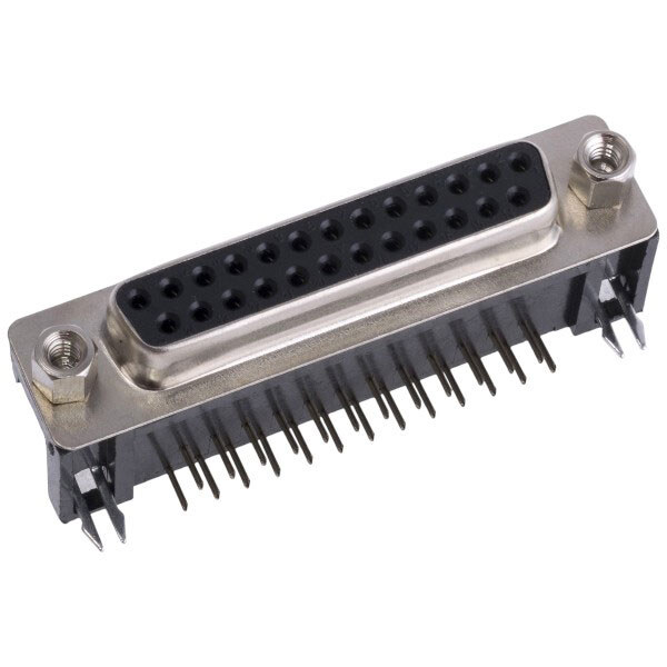 Примітка: Кількість контактів (N) 25 | Кількість рядів (Nряд) 2 | Тип внутрішньої частини гнізда | Тип роз'єму Виделка | Тип монтажу на плату, THT | Максимальна напруга (Umax), 1000 | Максимальний струм (Imax), A 5 | Орієнтація роз'єму кут 90 ° | Покриття контактів позолоту Робоча температура (Tраб), ° С -55 ... +105 | Тип фіксації гнізда 4-40