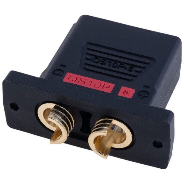 Примітка: Виробник: QS Electronic | Опис: Потужний роз'єм QS10P. Кількість контактів: 2. Матеріал контактів: мідь із позолотою. Матеріал ізолятора: поліамід. Номінальна напруга: 500V. Струм номінальний: 210А. Монтаж: на панель, , для проводу 6AWG...10AWG. | К-сть контактів: 2 | Серія роз’єма: QS10P-S | Монтаж: на корпус