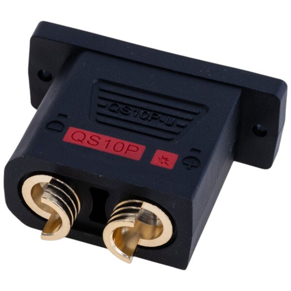 Примітка: Виробник: QS Electronic | Опис: Потужний роз'єм QS10P. Кількість контактів: 2. Матеріал контактів: мідь із позолотою. Матеріал ізолятора: поліамід. Номінальна напруга: 500V. Струм номінальний: 210А. Монтаж: на панель | К-сть контактів: 2 | Серія роз’єма: QS10P | Монтаж: на корпус