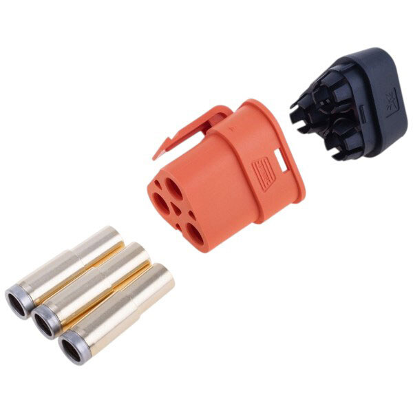 Примітка: Виробник: QS Electronic | Опис: Потужний роз'єм QS8T. Кількість контактів: 3. Матеріал контактів: мідь із позолотою. Матеріал ізолятора: поліамід. Номінальна напруга: 500V. Струм номінальний: 130А. Монтаж: на кабель "пайка" 12AWG…8AWG. | К-сть контактів: 3 | Серія роз’єма: QS8T | Монтаж: на провід