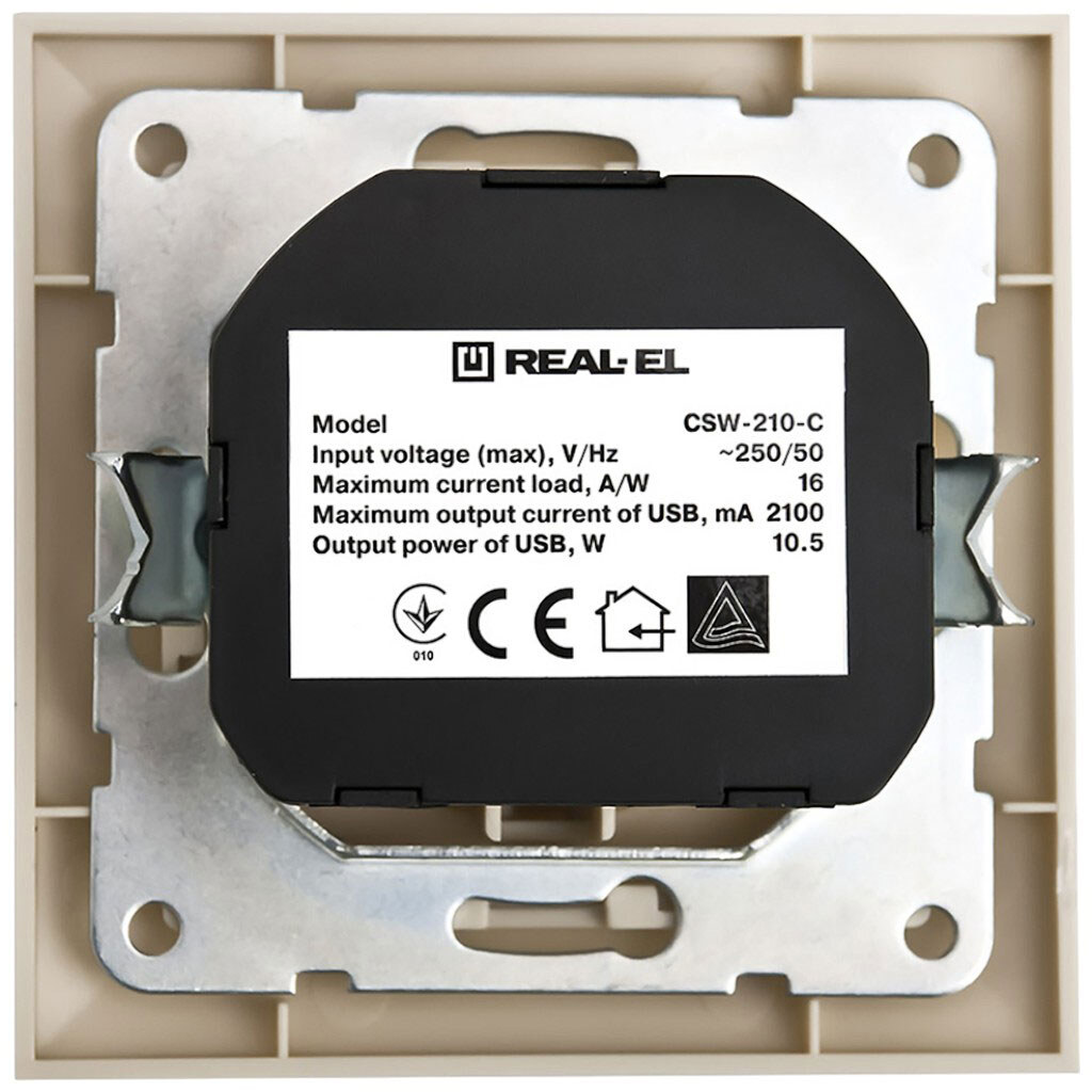 Розетка одинарна з заземленням вбудований з USB REAL-EL CSW-210-C кремова