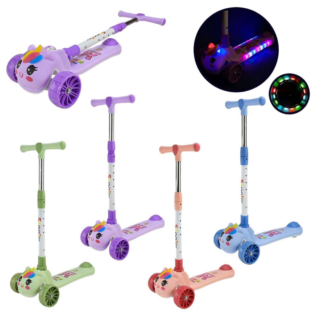 Самокат дитячий, 3-х колісний, складаний, колеса PU, муз., батар., світло, звук, Mic