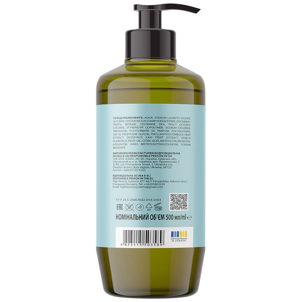 Примітка: Країна виробник: Україна | Об'єм: 500 мл | Особливості: Містить екстракт амли та хурми та олію ванілі | Призначення: Відновлення | Живлення | Тип волосся: Для всіх типів