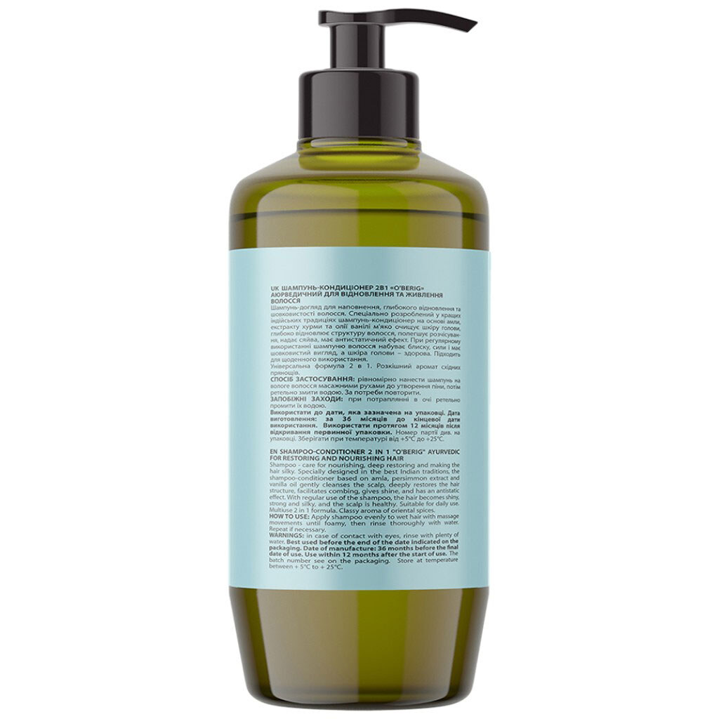 Шампунь-кондиціонер для волосся 2в1 O'BERIG Аюрведичний, 500 мл