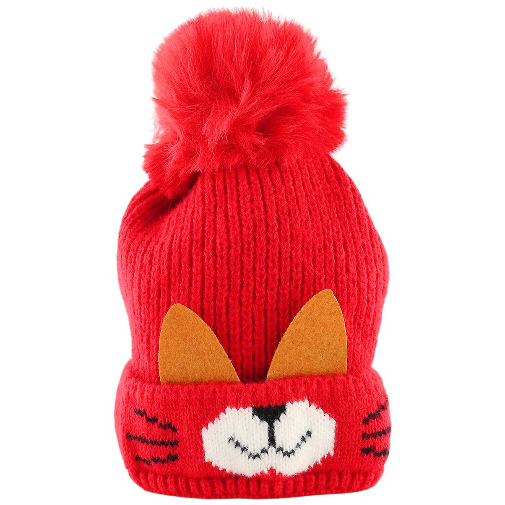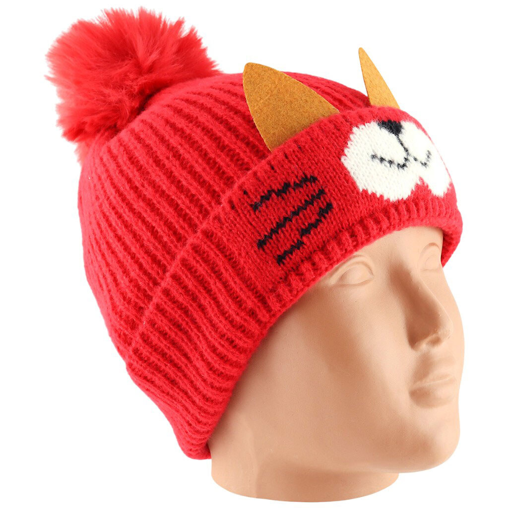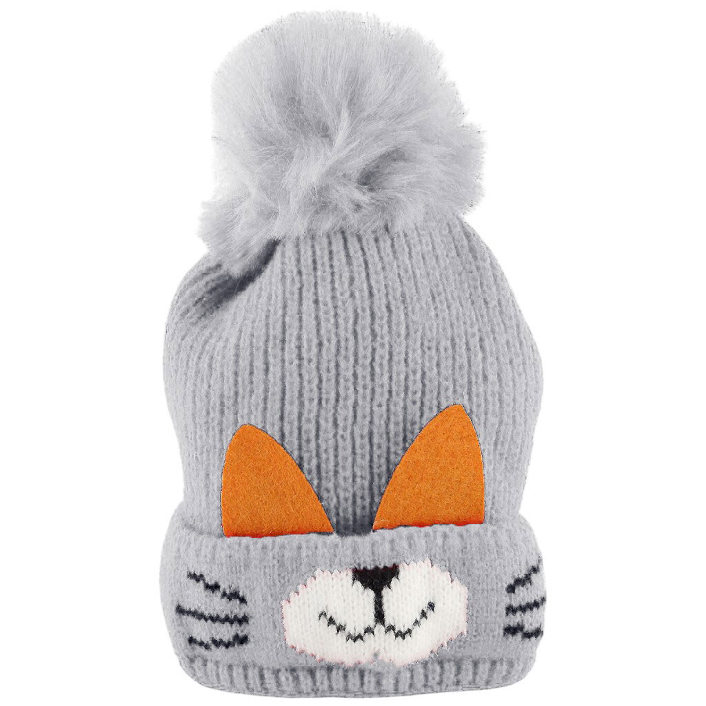 Шапка дитяча зимова з помпоном "Котик", мікс