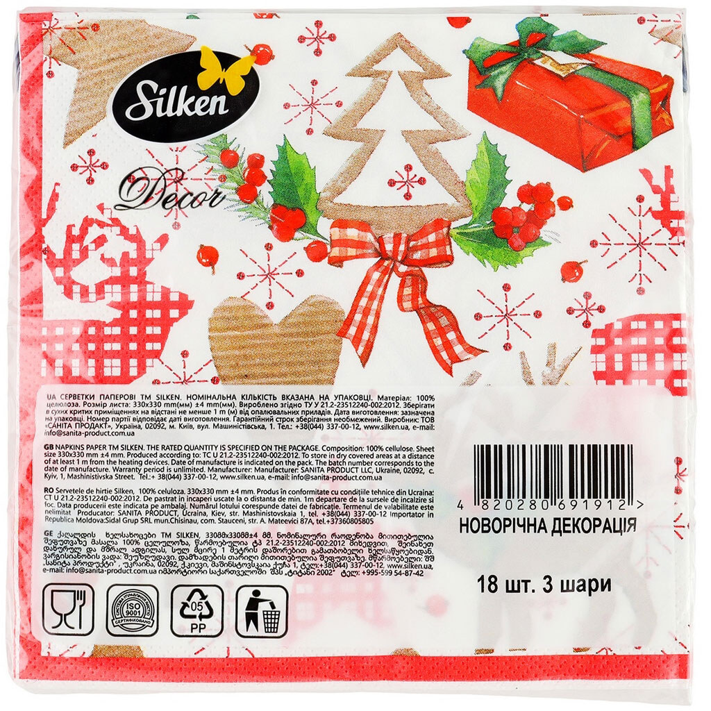 Серветки паперові Silken Новорічна декорація 3 шари 33х33 см