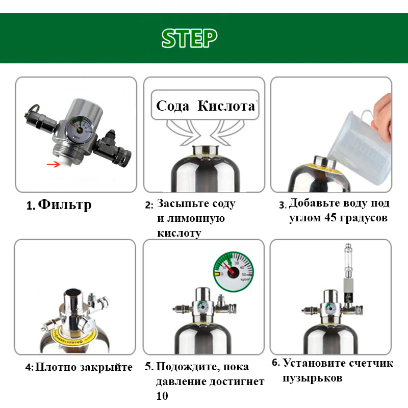 Дана балонна система є комплект обладнання, яке необхідно для подачі вуглекислого газу (CO2) в акваріум. Складається з: балона високого тиску, який "заправляється" газом під час реакції лимонної кислоти з харчовою содою, регулятора-стабілізатора тиску, лічильника бульбашок, дифузора та присоски.