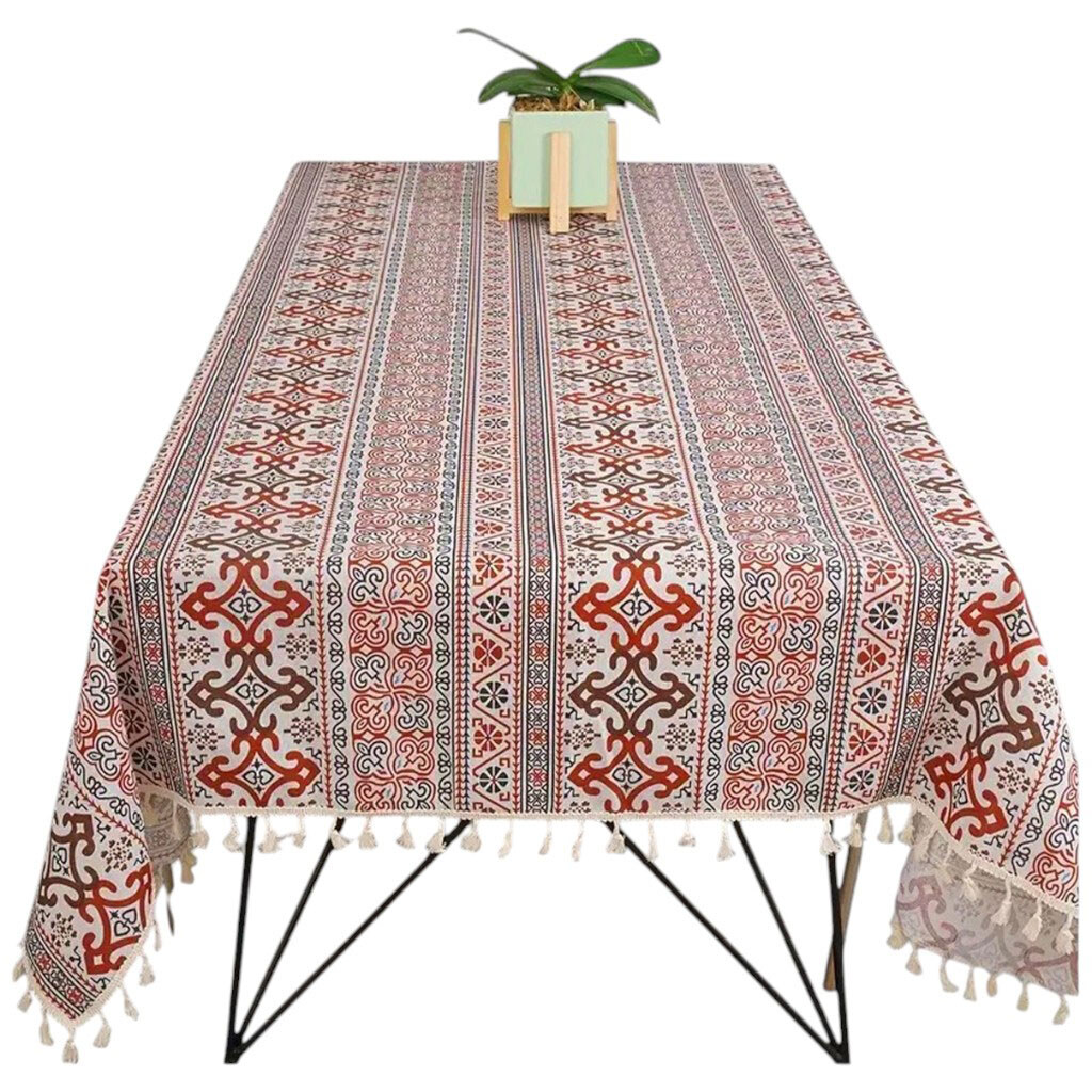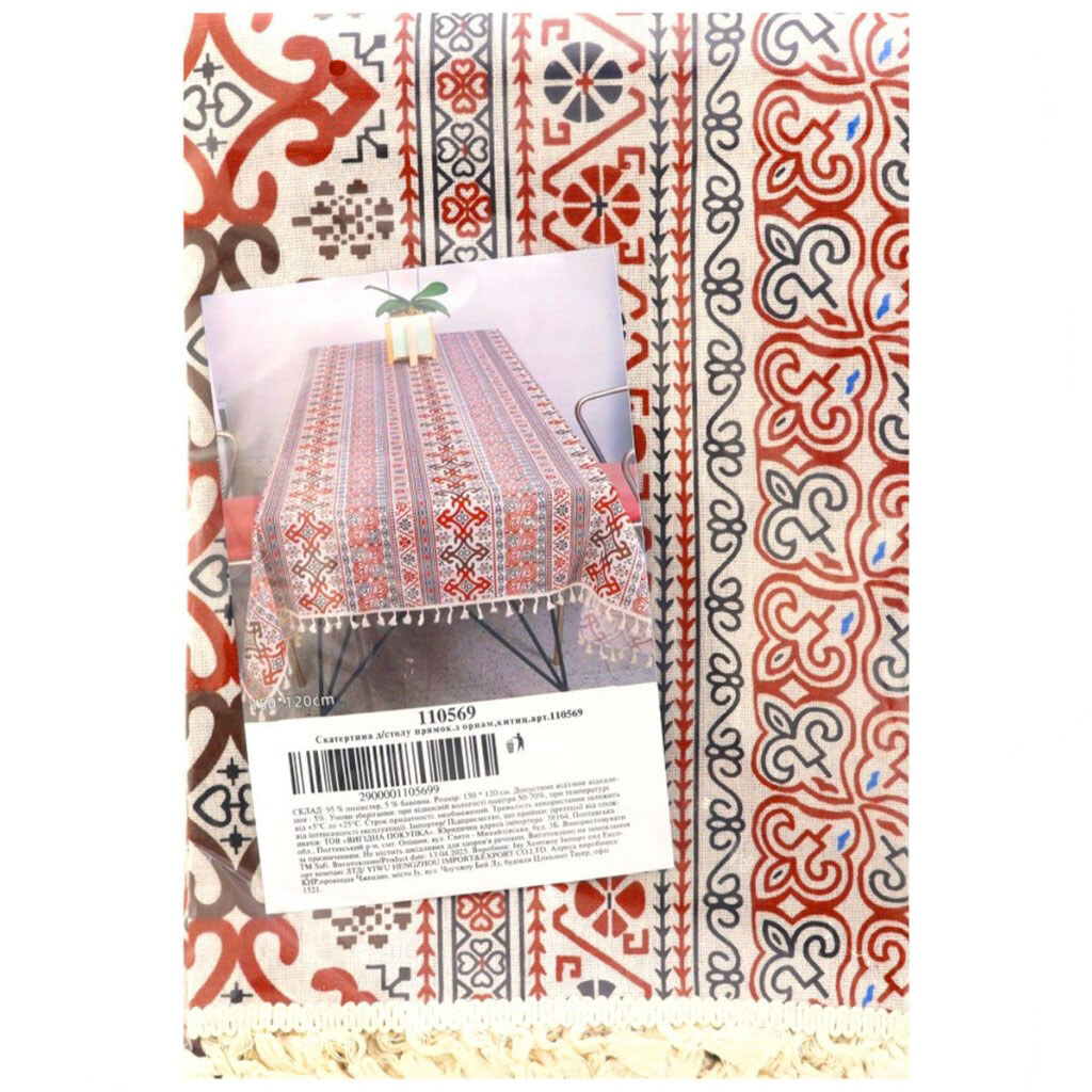 Скатертина для столу прямокутна з орнаментом, китицями, 150х120 см