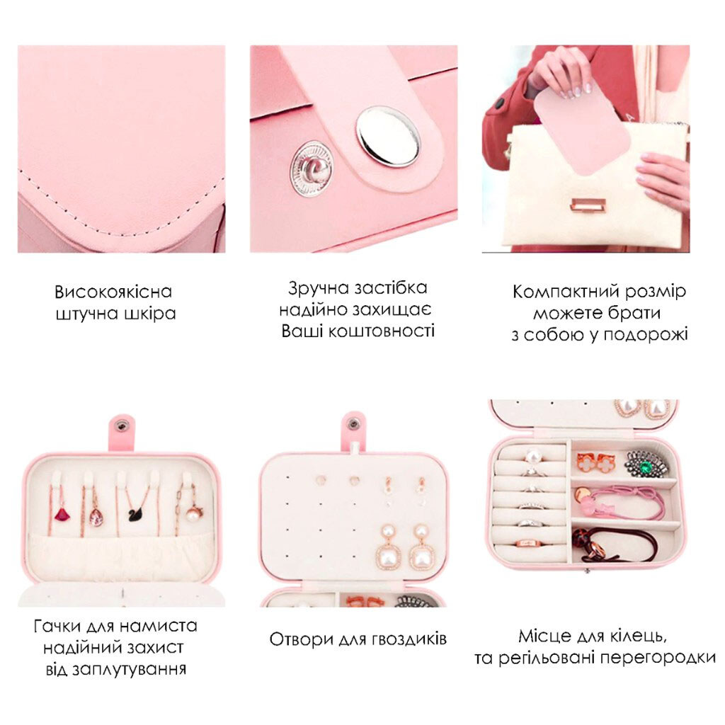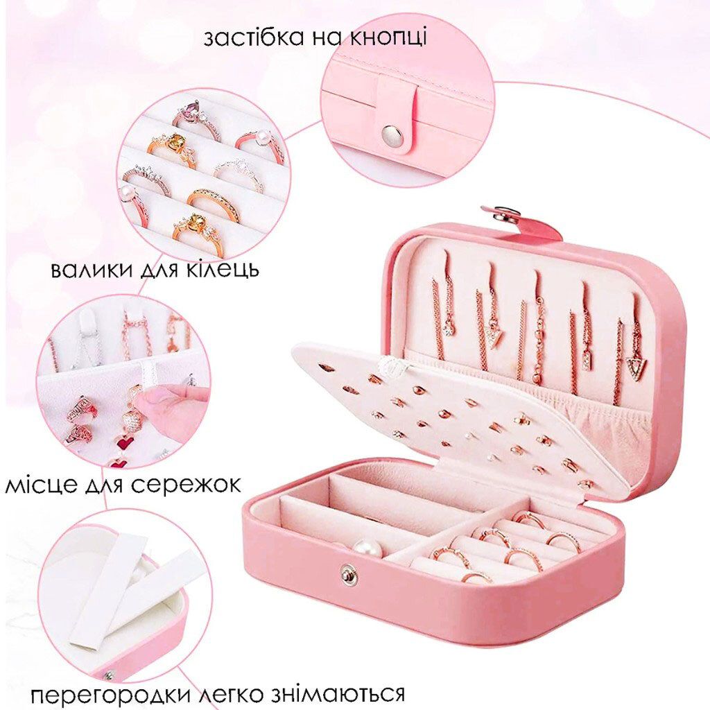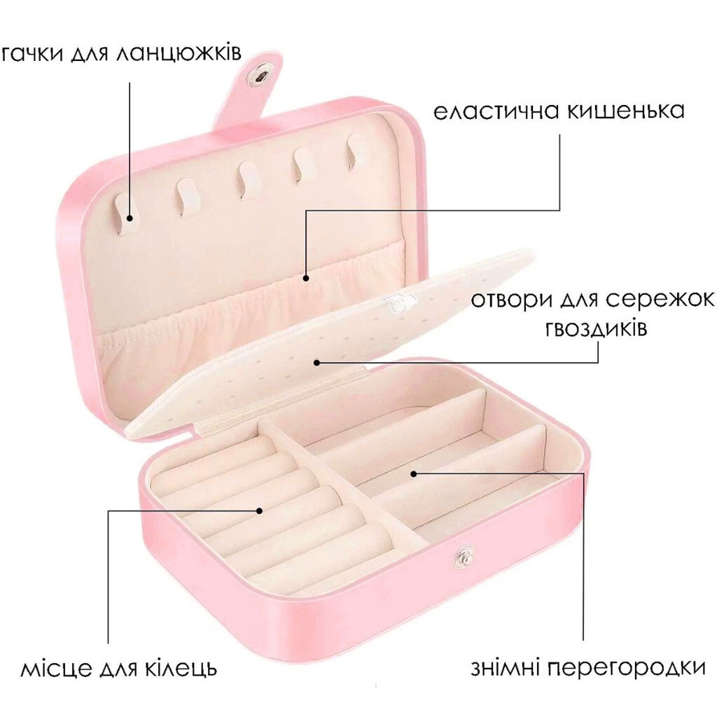 Примітка: Країна виробник: Китай | Матеріал: Поліпропілен, поліуретан, 100% поліестер, папір, залізо, гума | Призначення: Для зберігання та організації прикрас | Розмір: 16х11х5 см