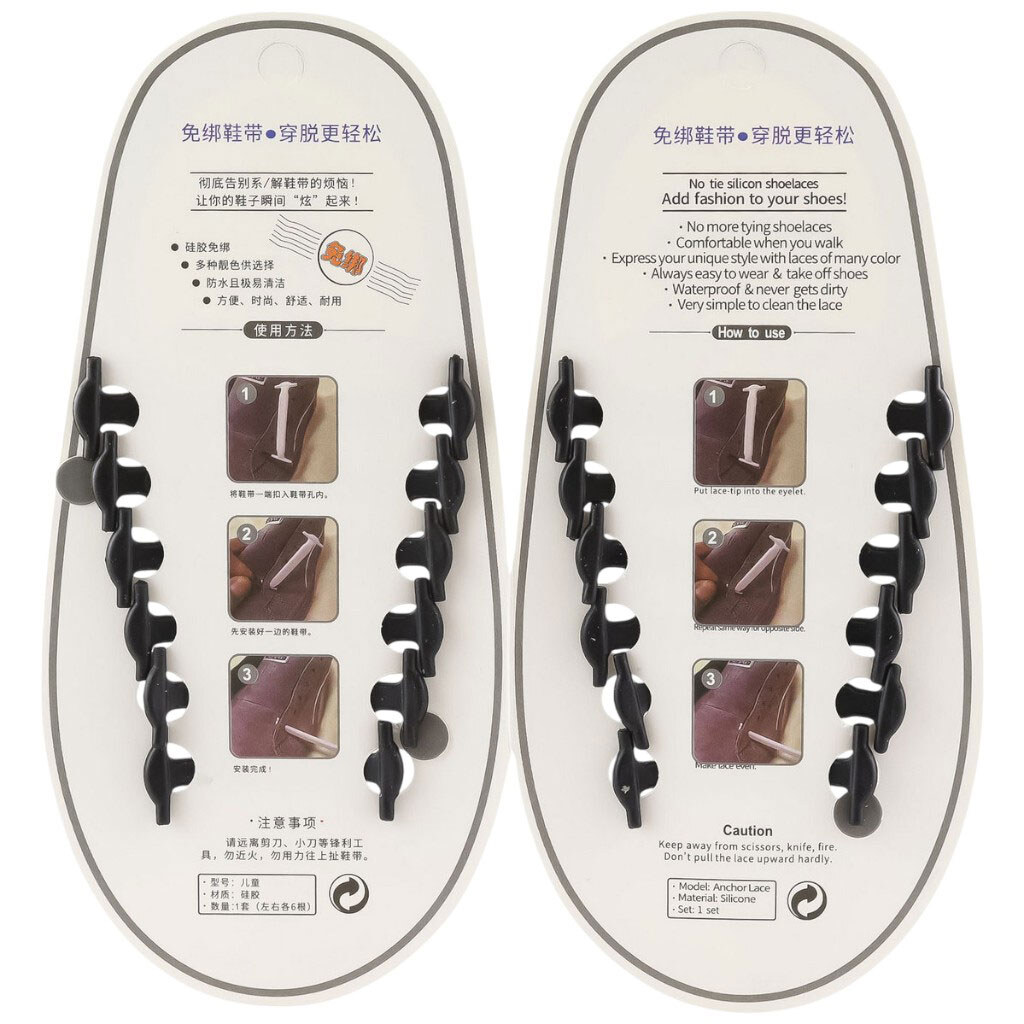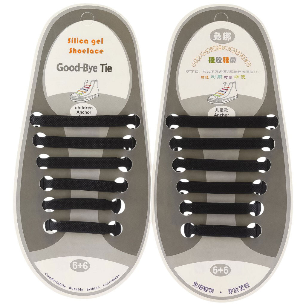 Примітка: Довжина: 4,5 - 7 см | Кількість в упаковці, шт: 12 | Колір: Чорний | Країна виробник: Китай | Матеріал: Силікон, термопластична гума | Призначення: Альтернатива класичним шнуркам