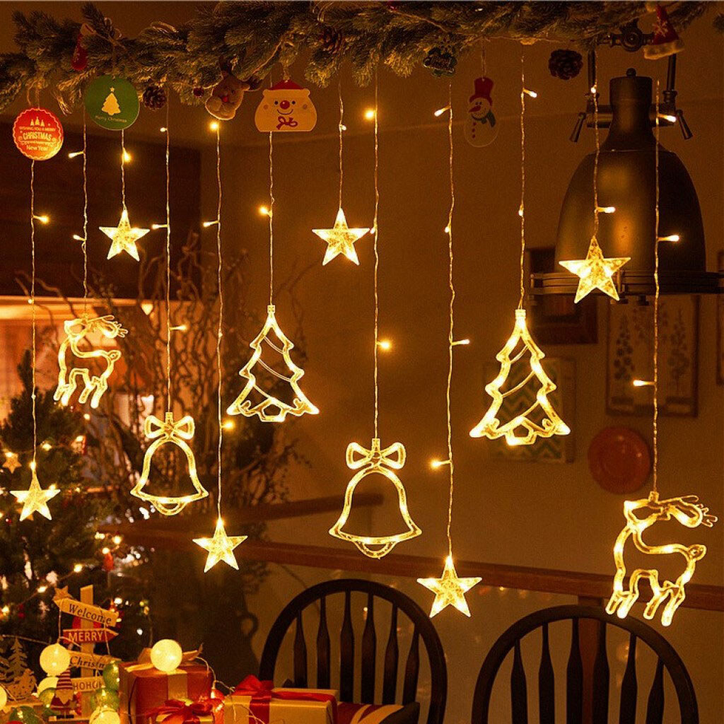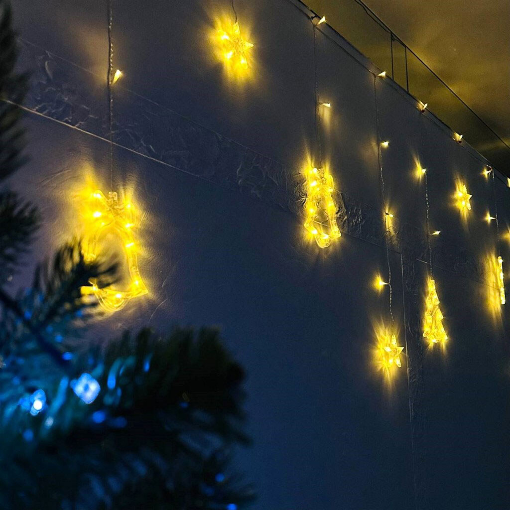 Примітка: дзвіночок, ялинка, олень, зірки 3.5mx1m, 138LED, Теплий, від батарейок