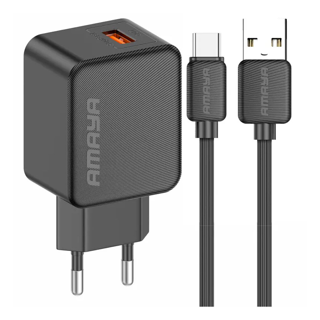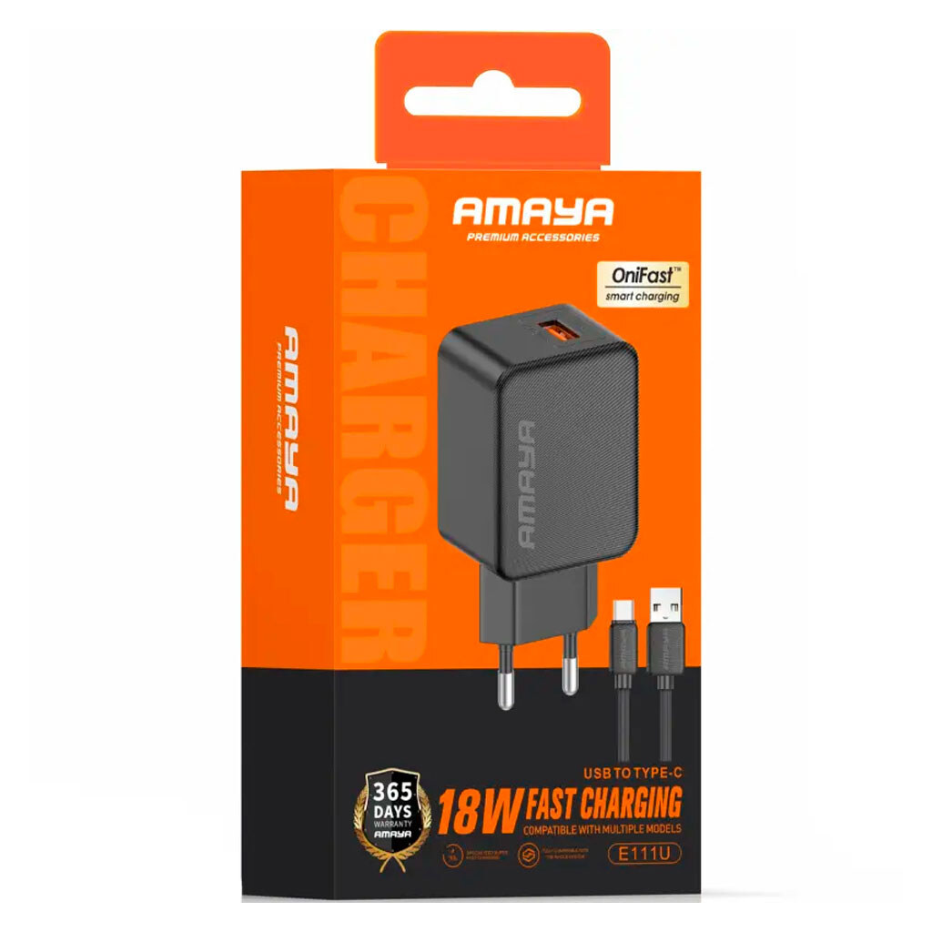 СЗУ Amaya E111U, Type-C, З кабелем, Чорний