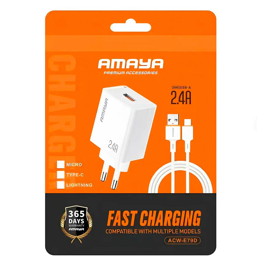 Ціна на СЗУ Amaya E79D, Type-C, З кабелем, Білий - 127. Товар 711609 в наявності та доступний до відправки.