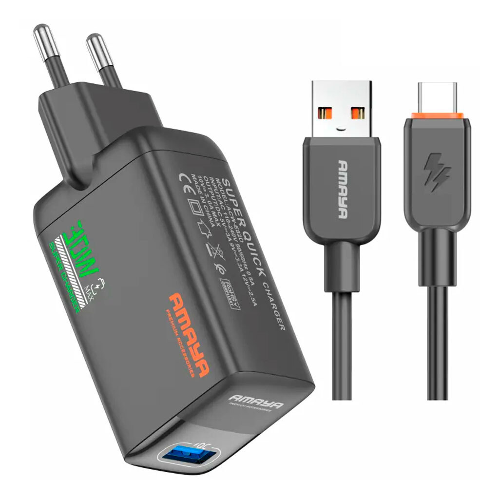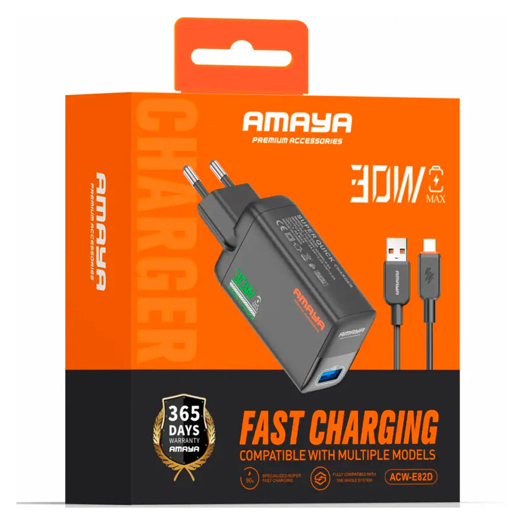Ціна на СЗУ Amaya E82D, З кабелем, Type-C, Чорний - 378. Товар 711611 в наявності та доступний до відправки.