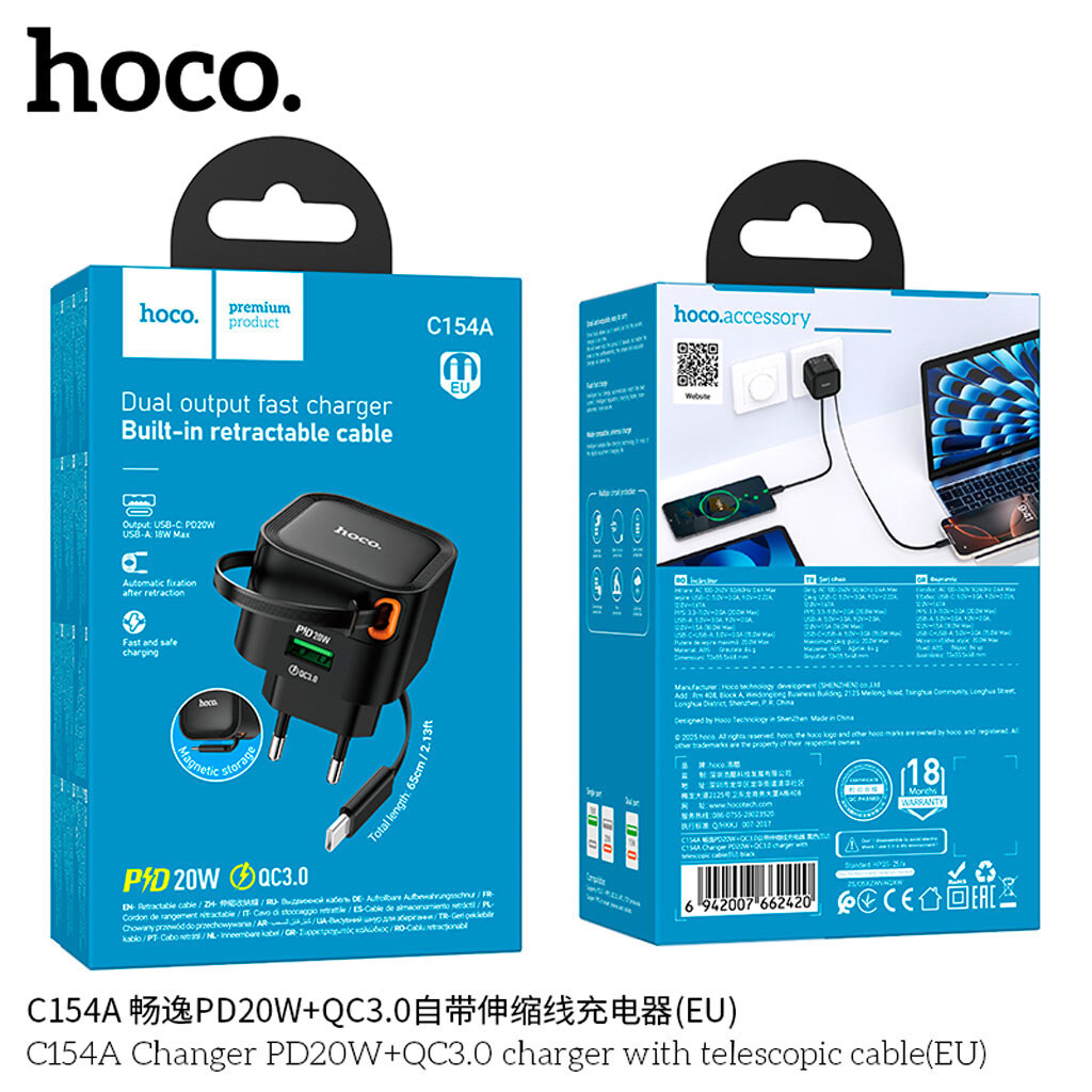 Купити СЗУ у нашому інтернет-магазині - вигідно та просто. Замовте СЗУ Hoco C154A, Type-C, З кабелем, Чорний через сайт Vseplus.com або зв'яжіться з нами по одному з телефонних номерів, вказаних на сайті компанії.