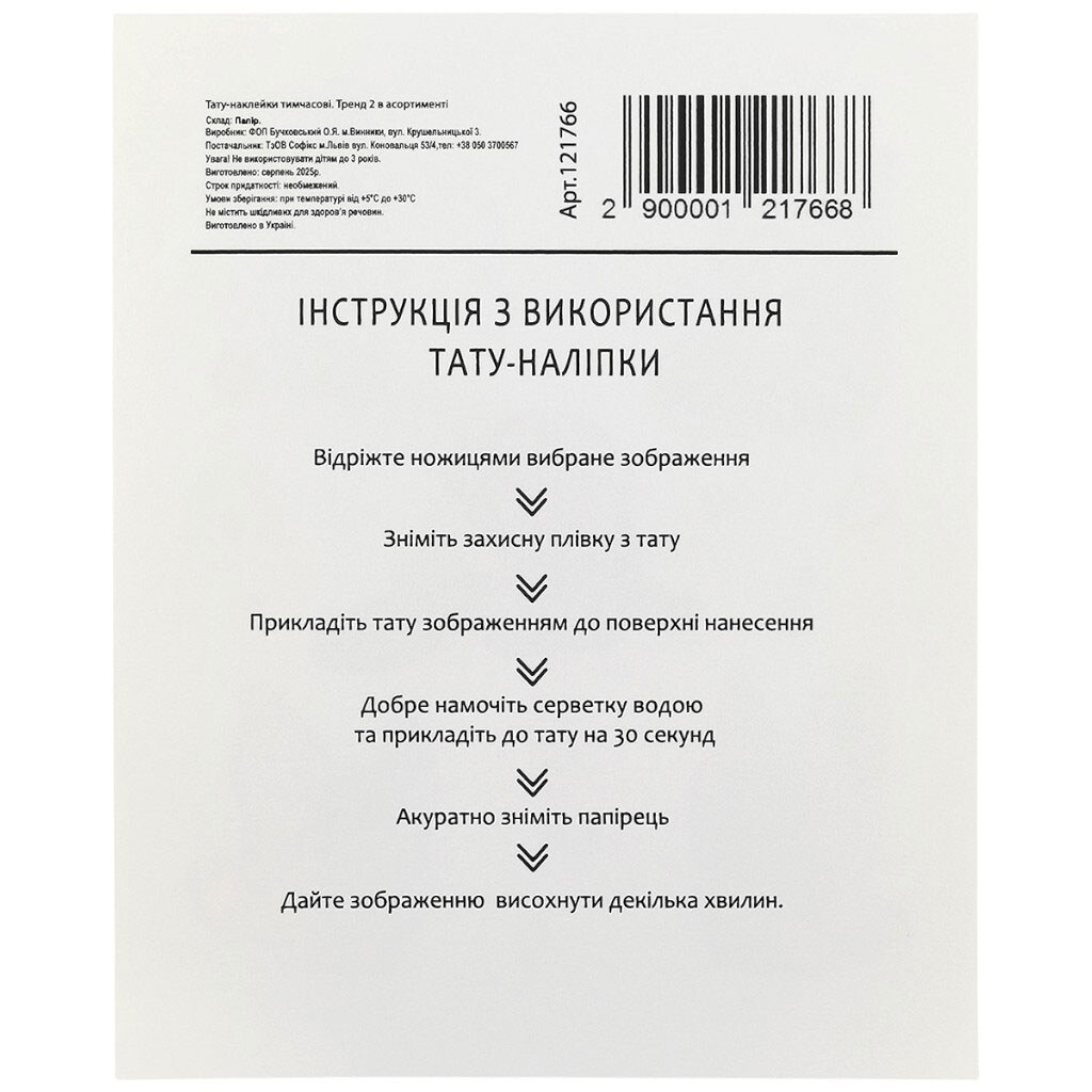 Тату-наклейки тимчасові Тренд2 в асортименті