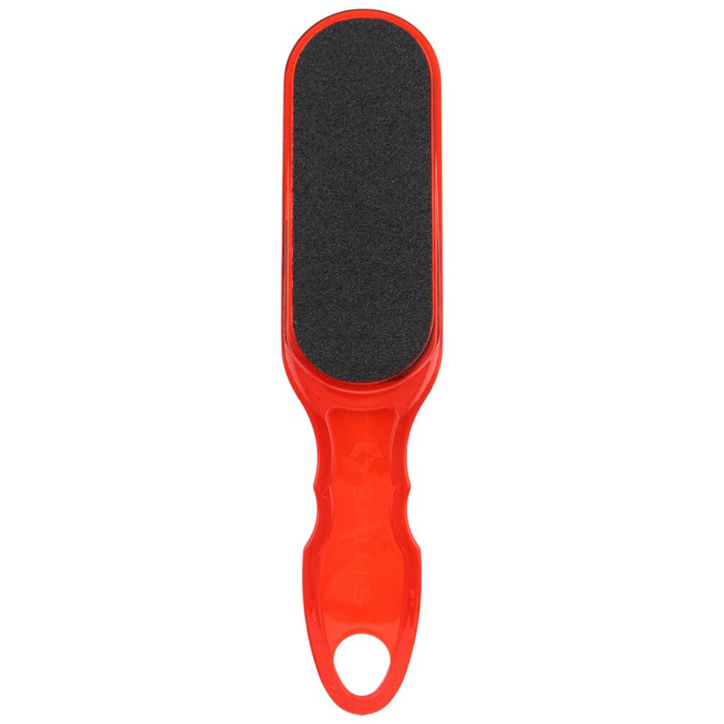 Примітка: Коментар: 2 види абразивності робочої поверхні для шкіри різного ступеня огрубіння | Країна виробник: Україна | Матеріал: Пластик, мінеральний абразивний матеріал карбід кремнію | Особливості: Одна сторона робочої поверхні опукла, інша увігнута | Призначення: Для педикюру | Розмір: 25,5х5,5 см