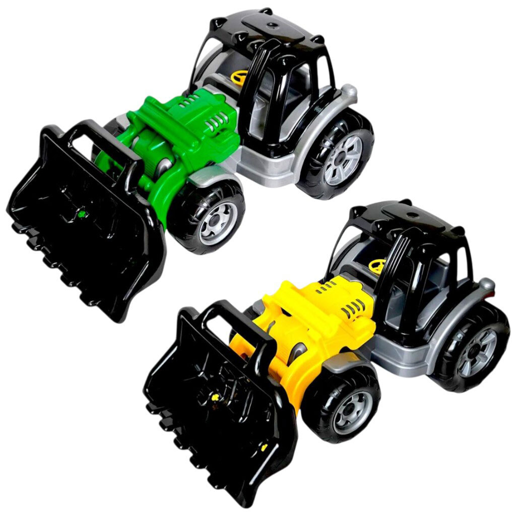 Примітка: Упаковка: Без упаковки | Вага в упаковці: 819 г | Габарити в упаковці: 46 x 26 x 25 см | Країна виробник: Україна | Комплектація: Трактор з вбудованим рухомим ковшем