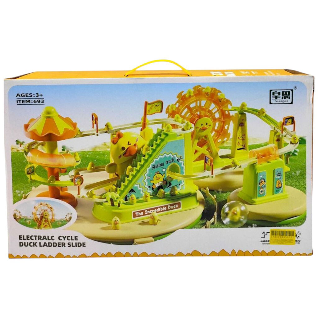 Трек, автоматичний принцип роботи, підсвічування, музика, беззвучний режим, автоматичний підйомник, колесо, 6 каченят, аксесуари, наклейки, в коробці, Mic