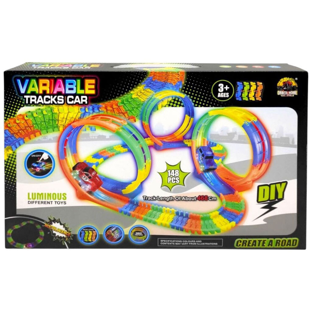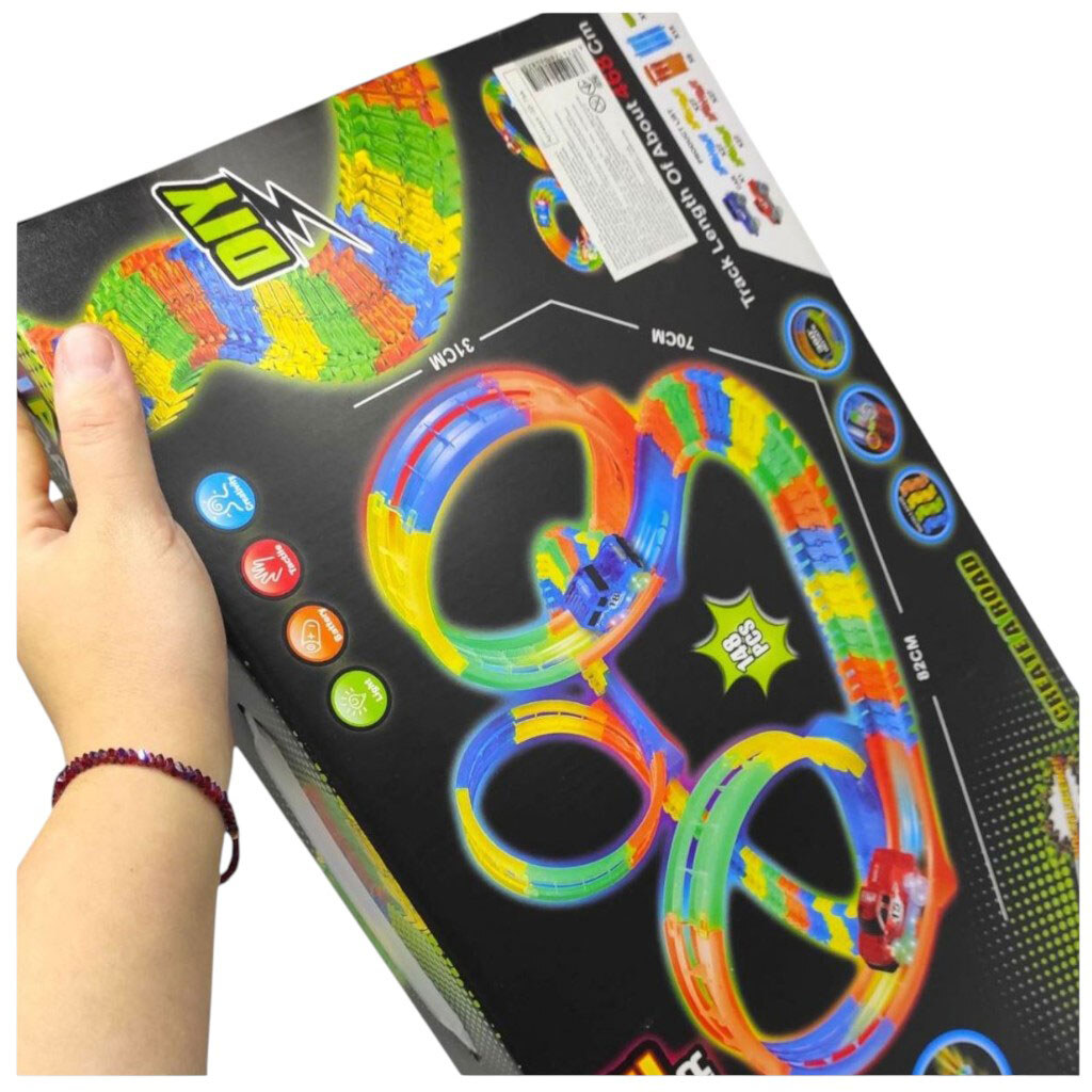 Трек, світло, машинка на батарейках, люмінесцентний, автоматичний рух, 148 елементів, довжина треку 468 см, Mic