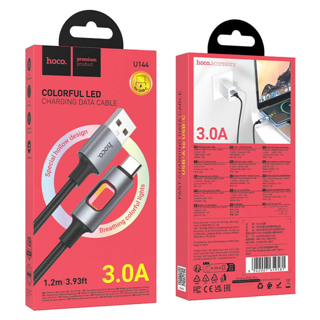Ціна на USB кабель Hoco U144, Type-C, 1.2 м., Чорний - 183. Товар 657298 в наявності та доступний до відправки.