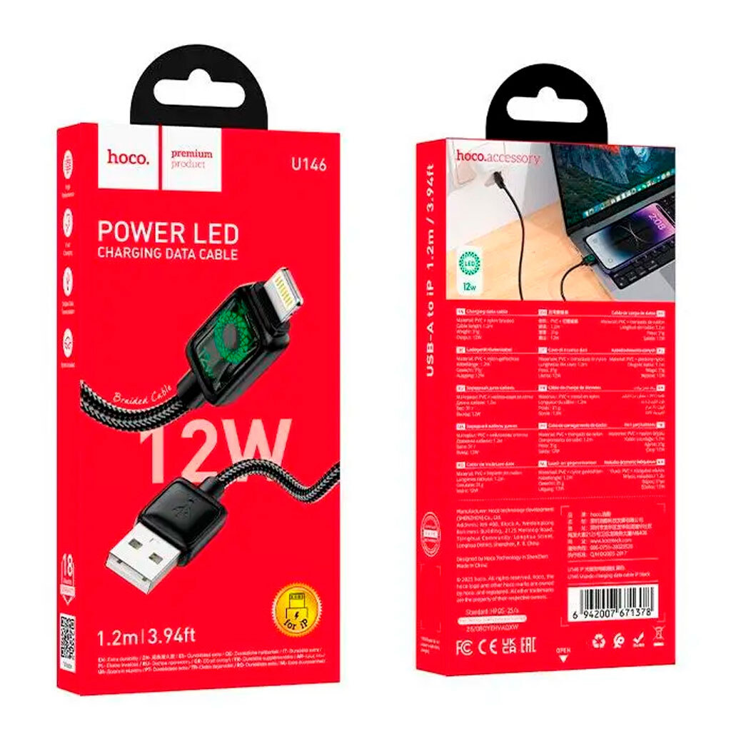 Ціна на USB кабель Hoco U146 Mundo Apple iPhone SE 2022 / iPhone 14 Pro Max / iPhone 14 Plus / iPhone 14 Pro / iPhone 14 / iPhone 13 Pro / iPhone 13 Mini / iPhone 13 / iPhone 13 Pro Max / iPhone 12 Mini / iPhone 12 Pro Max, Lightning, 1.2 м., Чорний - 202. Товар 696447 в наявності та доступний до відправки.