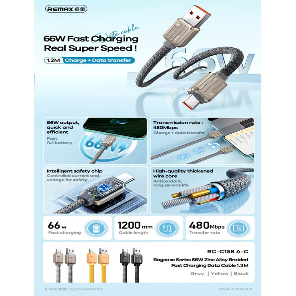 USB кабель Remax RC-C158 Bagcase, Type-C, 1.2 м., Сірий