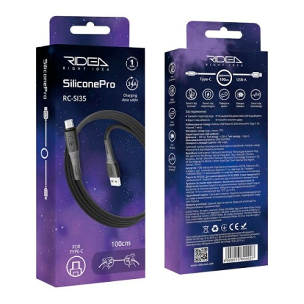 Купити ₴ Скільки коштує USB кабель Ridea RC-SI35 SiliconePro, Type-C, 1.0 м., Чорний?