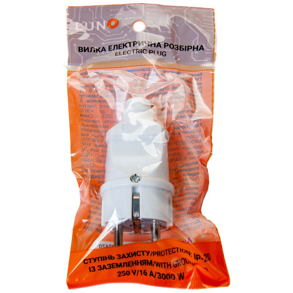 Примітка: Довжина: 3,5 см | Коментар: Напруга: 250V. Максимальна потужність: 3000 W | Країна виробник: Китай | Матеріал: ABS-пластик. Матеріал контактів: мідь | Призначення: Для підключення будь-яких електроприладів до електромережі | Сила струму, А: 16 А | Ширина: 3,8 см