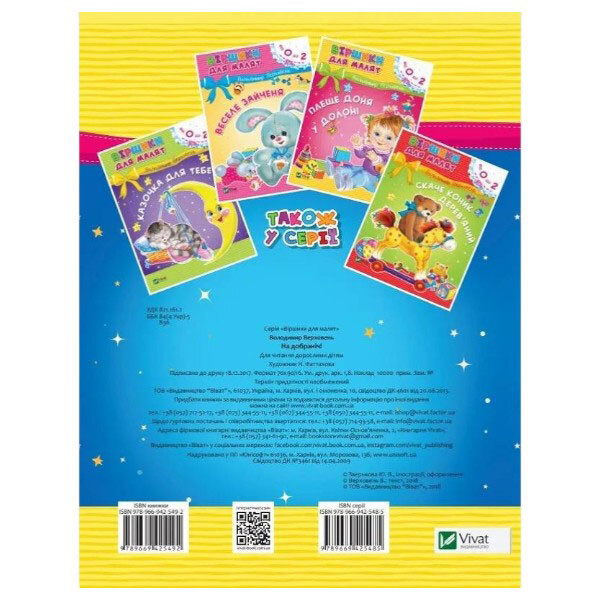 Вірші для малюків "На добраніч", від 0 до 2 років, Володимир Верховень, Vivat