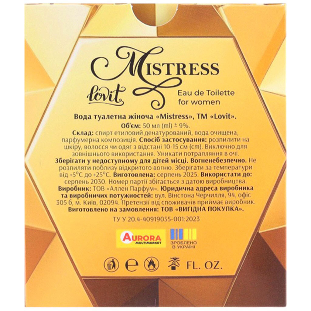 Вода туалетна жіноча Lovit "Mistress", 50 мл