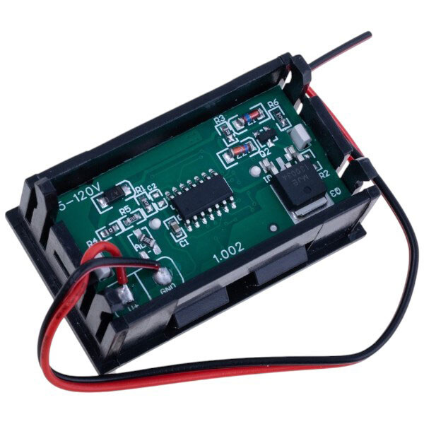 Примітка: Опис: Вольтметр на панель, колір індикатора: синій.. Дисплей: 0,56''. Діапазон вимірювання: DC 5-120V. Частота оновлення: близько 300 мс. Точність +/-1%. Габарити: 48x29x22mm. Розмір монтажного отвора: 46x27mm. | Призначення: Вимірювання вольтметр | Тип виробу: Готовий модуль
