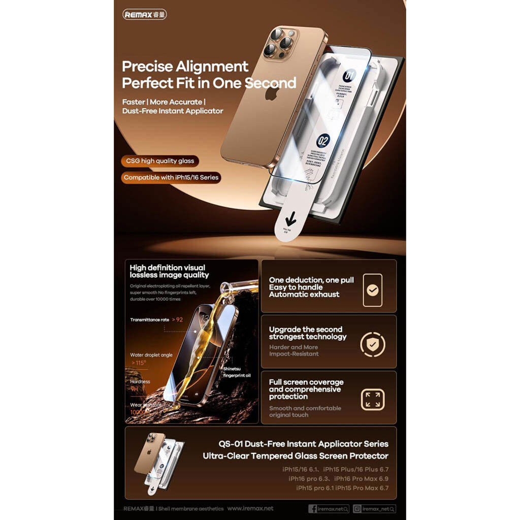 Захисне скло Apple iPhone 15, Remax QS-01, Чорний