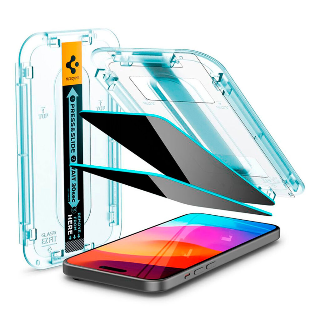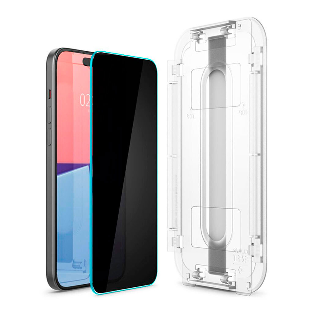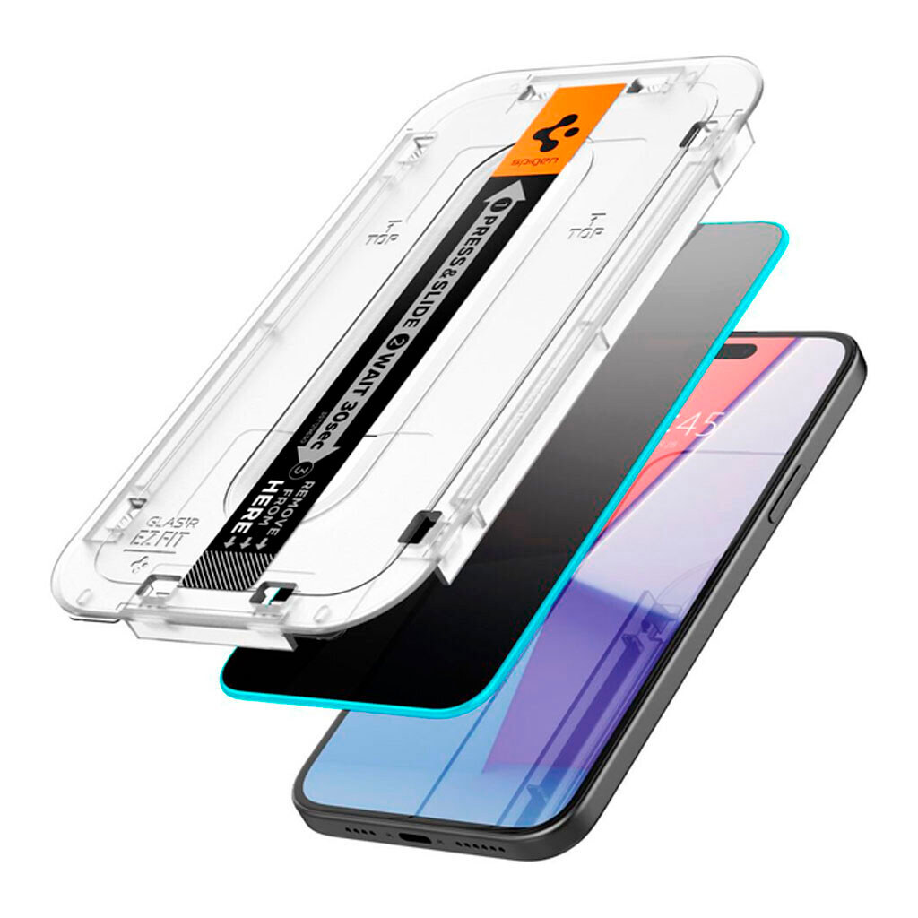 Захисне скло Apple iPhone 15 Pro, Spigen Glastr EZ FIT, Антишпигун, Чорний