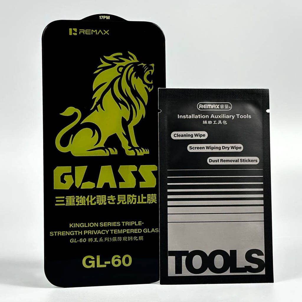 Захисне скло Apple iPhone 17 Pro, Remax GL-60 Kinglion, Антишпигун, Чорний