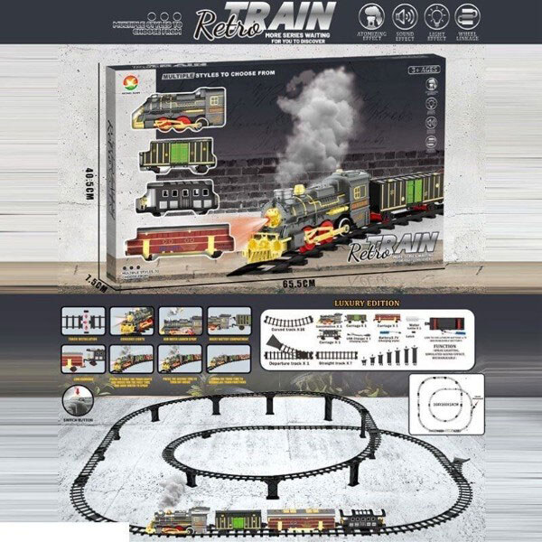 Залізниця: акумулятор 3.7 V, локомотив, 3 вагони, звуки, підсвічування, парогенератор, у коробці, Xiong Xian